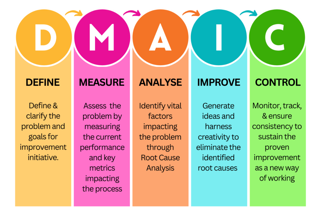 DMAIC is a problem-solving and quality management methodology used in Lean Six Sigma projects. DMAIC stands for Define, Measure, Analyze, Improve, and Control. As outlined here, it provides a structured framework that aims to identify and quantify sources of variation to improve existing processes and achieve operational excellence and continuous improvement [6, 7, 8, 9, 10, 5]. At each stage of this powerful framework, it brings together suitable Lean and Six Sigma tools and techniques to facilitate data-driven decision-making and develop an effective deployment model, catering to organizations with diverse needs [10].